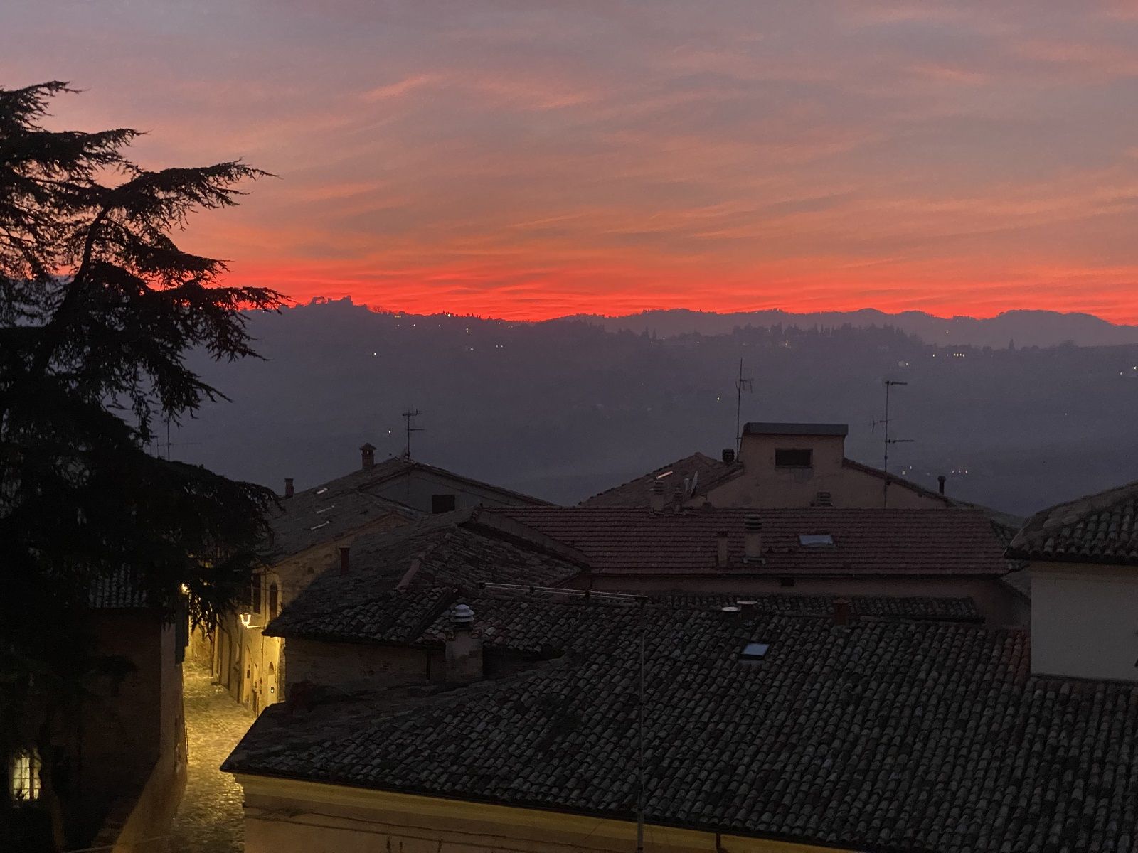 Tramonto mozzafiato quello di oggi, mercoledì 24 gennaio, a Cesena. Cieli sereni e basse temperature hanno regalato uno spettacolo da incorniciare con il cielo dipinto di tutte le tonalità di rosso.