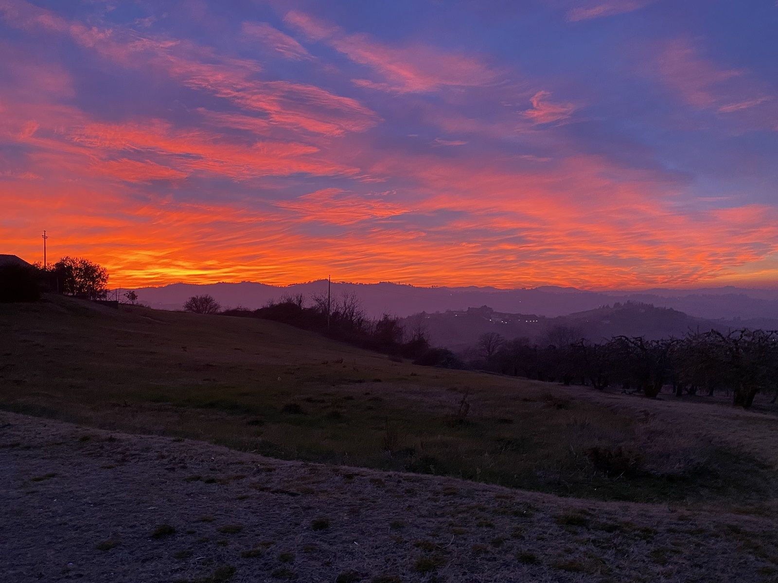 Tramonto mozzafiato quello di oggi, mercoledì 24 gennaio, a Cesena. Cieli sereni e basse temperature hanno regalato uno spettacolo da incorniciare con il cielo dipinto di tutte le tonalità di rosso.