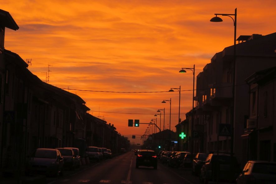 Tramonto di fuoco poco fa nel Cesenate. Per la nostra rubrica “Natura spettacolo” pubblichiamo uno scatto da Macerone che ci è giunto da Pippo foto.