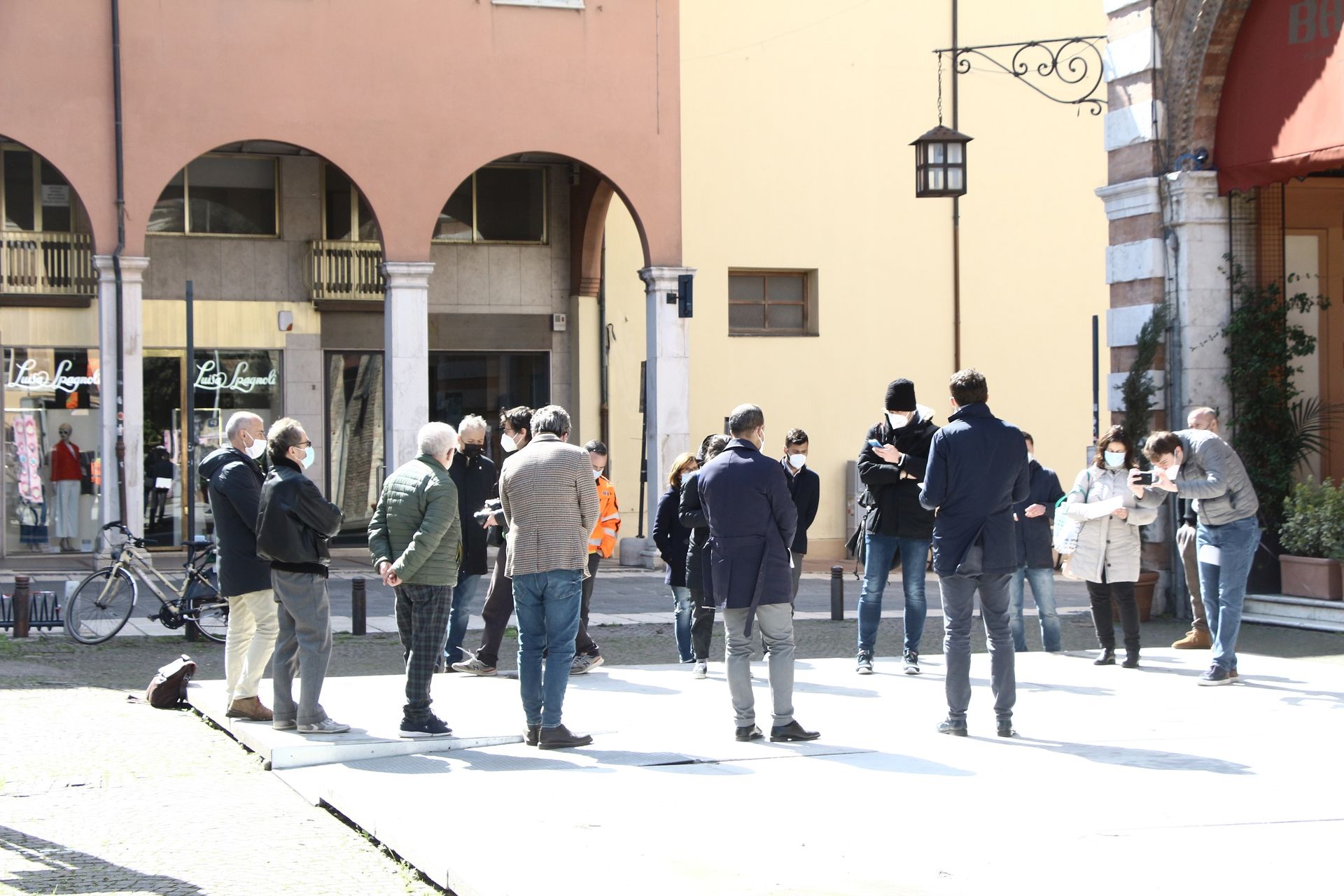 Il cantiere di riqualificazione architettonica e funzionale è stato dettagliato questa mattina durante una delle prime conferenze stampa in presenza. Accanto al caffè Babbi, nell’ampia pedana che ospitava tavoli e sedie e che riaprirà appena le misure anticovid lo permetteranno sull’altro lato del Ridotto, con la caratteristica giostra per bambini in fase di smontaggio, il sindaco Enzo Lattuca ha riassunto il progetto frutto di un concorso di idee aggiudicato nel 2012 dai progettisti Marco, Francesco e Paolo Ceredi dal titolo “Sguardi: tre piazze”.