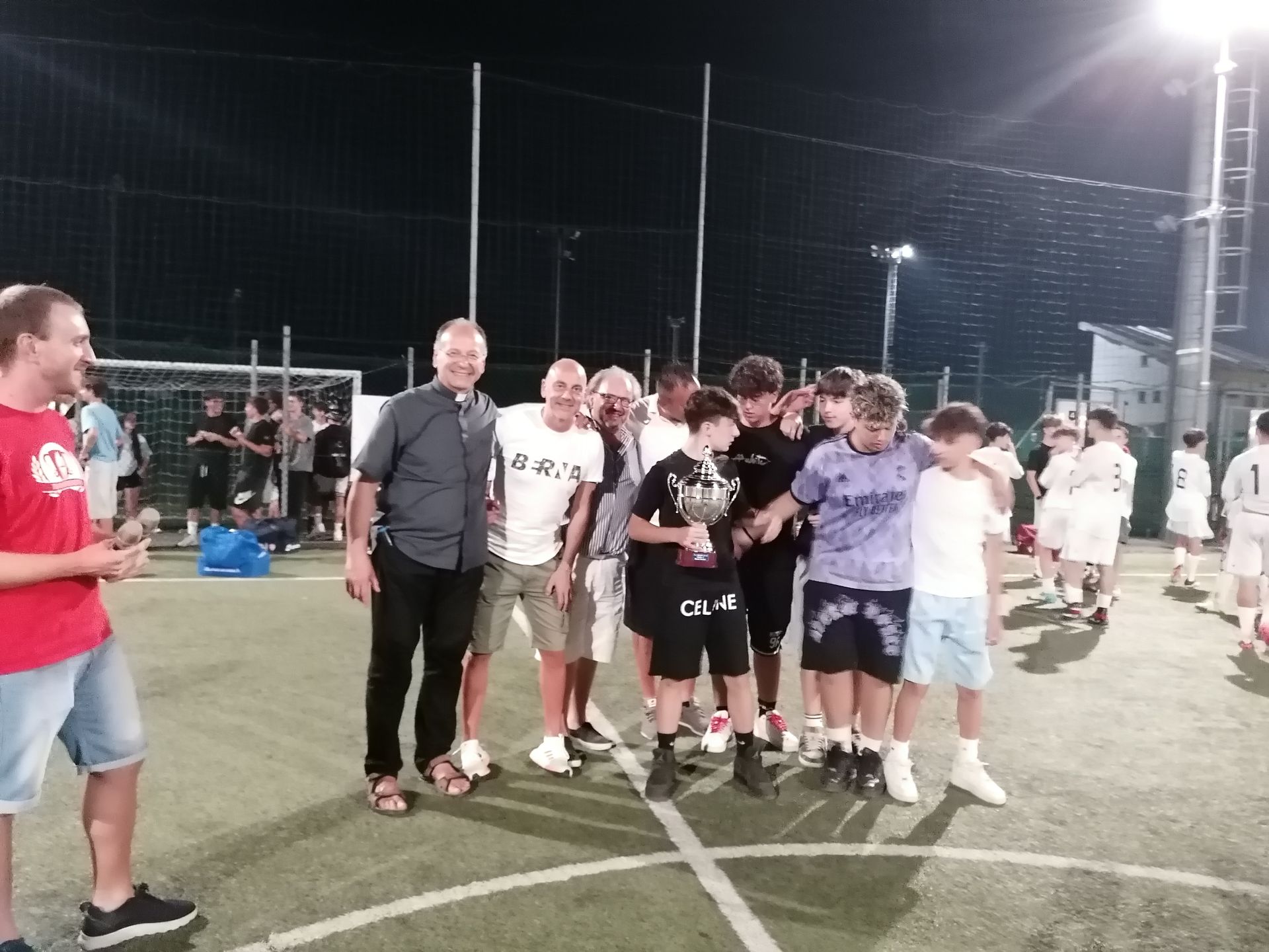 La sera di venerdì 28 giugno presso il centro sportivo di Martorano si sono giocate le finali del calcio a 7 e a seguire si sono svolte le premiazioni di calcio a 7 e calcio a 5. Per il calcio a 5, prima classifica è stata la squadra di San Carlo (nella foto in alto) La “Squadra Benedetta”, cioè la squadra che più ha incarnato lo spirito di fraternità del torneo, è stata Gattolino. La squadra del San Carlo ha destinato il premio dei primi classificati alle famiglie bisognose della propria parrocchia.