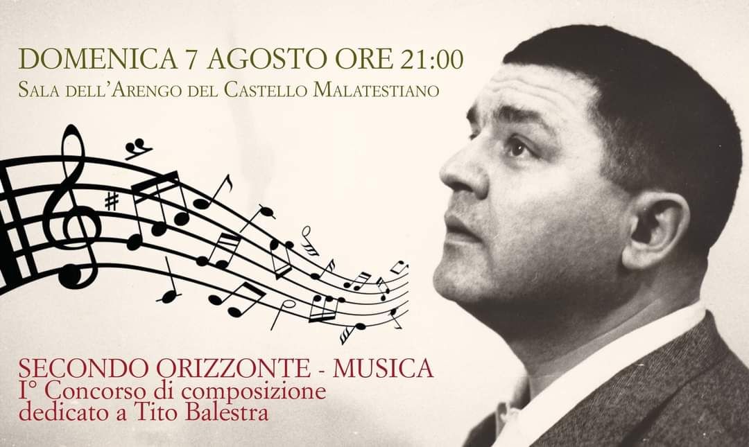 “Secondo orizzonte – Musica”, titolo del concorso di composizione, che vede la collaborazione con il San Marino International Music Summer Courses, vuole ricordare l’importante figura di Tito Balestra. Il progetto nasce dall’intuizione di ispirare la musica di giovani musicisti con la sua poetica. Tito Balestra scopritore di talenti all’epoca e scopritore di talento oggi: le sue poesie come seme da cui far nascere musiche di giovani e promettenti autori del futuro.