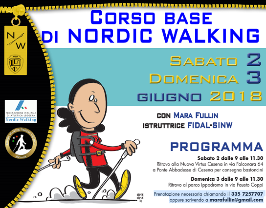 Sabato si terrà il primo modulo dalle 9 alle 11,30 presso il centro sportivo Nuova Virtus Cesena Nordic Walking in via Falconara 88, Ponte Abbadesse. Il ritrovo è fissato per le 8,45 per la consegna dei bastoncini.