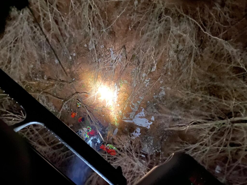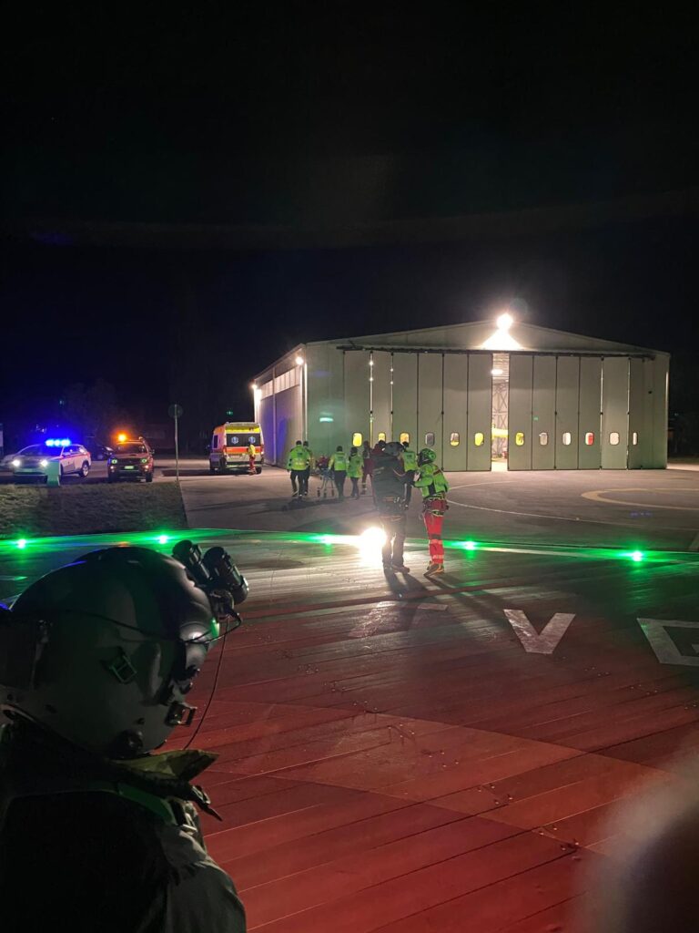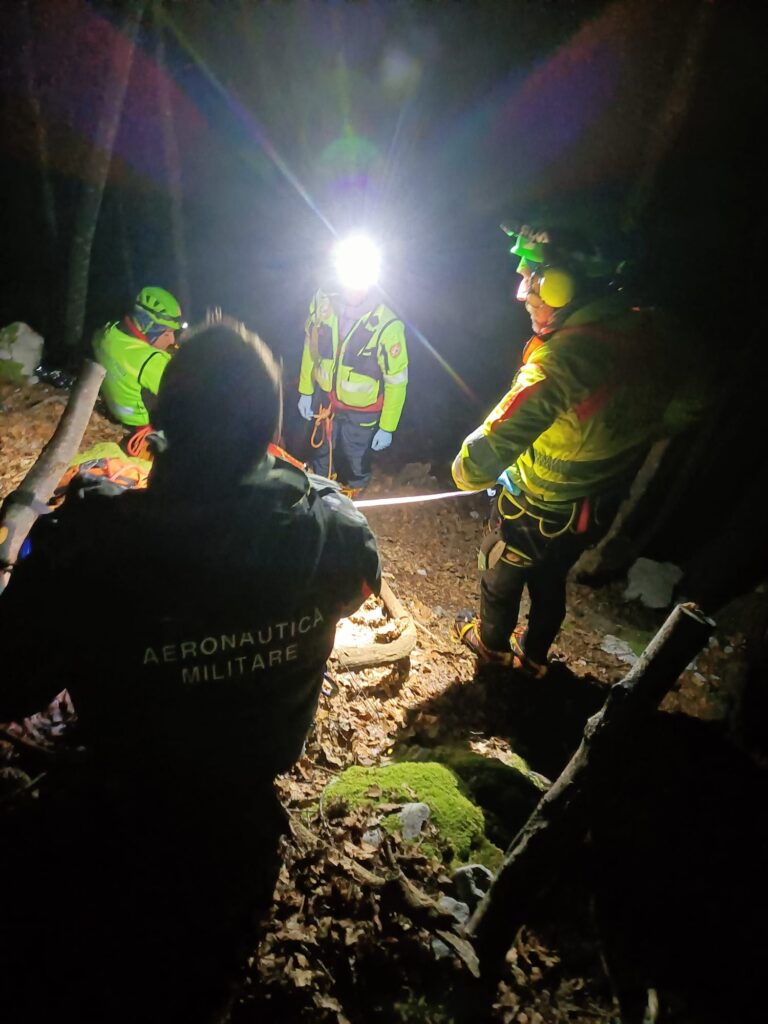 Dall’alto, l’equipaggio militare ha individuato una luce in movimento a circa 300 metri di distanza sotto il punto in cui si trovavano le squadre di terra e grazie alle comunicazioni via radio e all’illuminazione ha potuto guidare i soccorritori verso l’infortunato.