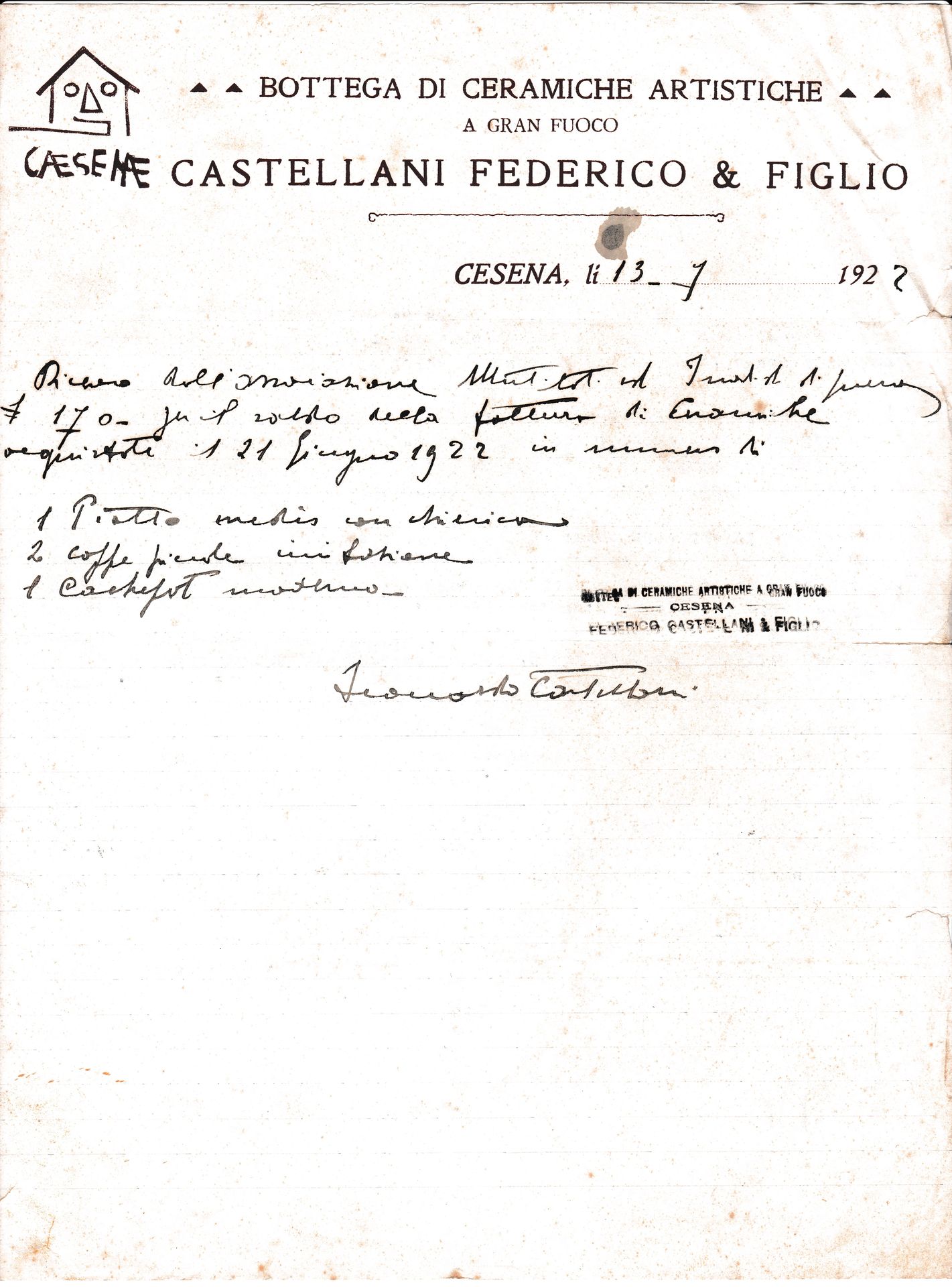 La «Bottega Ceramica Artistica a gran fuoco Leonardo Castellani & C.» aperta fra il 1920 e il ’21 da Leonardo Castellani (Faenza 1896 – Urbino 1984) in società con Giannetto Malmerendi (Faenza, 3 novembre 1893 – Cesena, 7 agosto 1968) e già chiusa nel 1923, trovò ubicazione in un torrione delle mura malatestiane detto PORTACCIA, sul torrente Cesuola.