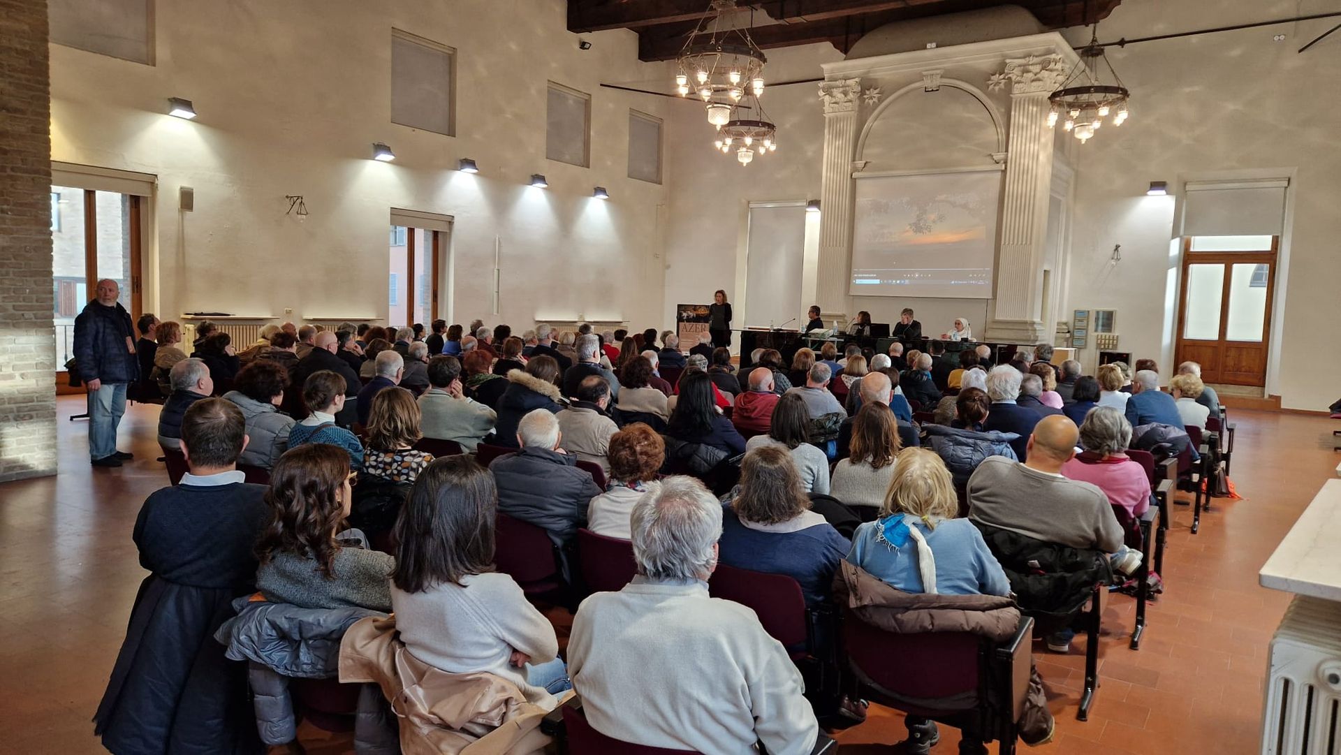 Palazzo del Ridotto pieno di gente, questo pomeriggio a Cesena, per la presentazione della mostra “Azer, l’impronta di Dio. Un monastero nel cuore della Siria”.