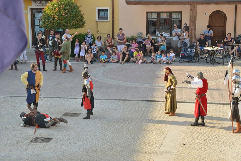 Alle 21,30 sarà tempo di banchetto alla Corte del Castello, con falconeria, danze, musica medievale, mangiafuoco, duelli di scherma e sbandieratori, ma senza mai abbassare la guardia. Alle 23.15, infatti, l’assedio al Castello impegnerà tutti in una battaglia senza esclusione di colpi.