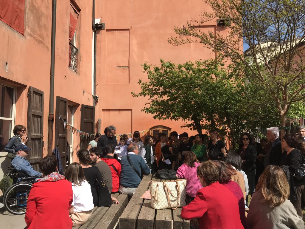 Ha partecipato alla mattinata anche la classe 2° D della scuola media ‘Viale della Resistenza’, che oltre un anno fa ha traslocato dall’Ippodromo proprio a palazzo Mazzini-Marinelli, “Dopo l’iniziale preoccupazione che porta ogni cambiamento, si è rivelata un’esperienza positiva, la bellezza di questi spazi e la vicinanza con la Malatestiana cambia lo stare a scuola – ha detto la docente Claudia Magnani –. Anche il camminare insieme per andare e tornare da scuola è stato un tempo bello dello stare insieme. Siamo contenti di poter tornare a breve nella nostra sede, curiosi di vederla trasformata. Grazie per l’ospitalità”.