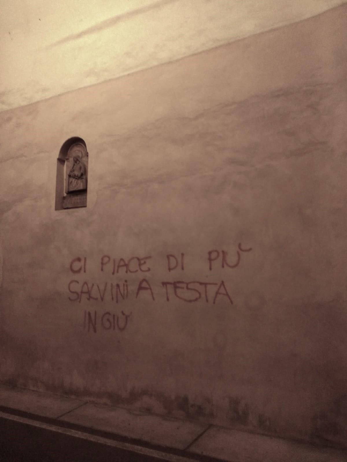 Una scritta offensiva contro Matteo Salvini nei paraggi di Porta Santi