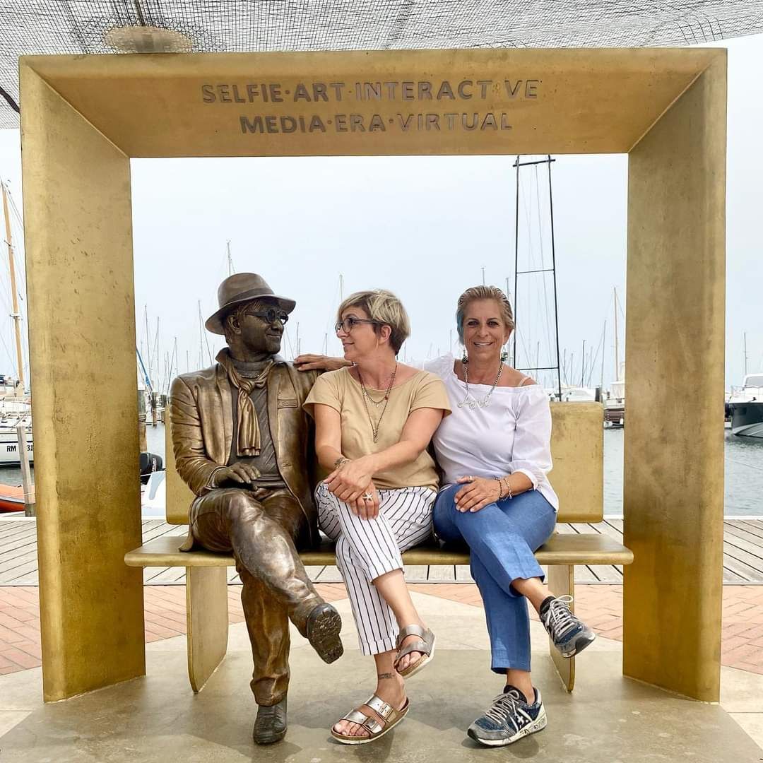 “Oggi sono stata a visitare la statua iperrealista e interattiva dedicata a Lucio Dalla. Un nuovo modo di fruire l’arte”, scrive Mirna Casadei. “Quando mi sono seduta vicino a Lucio ed ho guardato i suoi occhi mi sono commossa. È stata un’emozione incredibile. Lucio è reale vivo, vibrante. Lasciarsi guardare negli occhi da lui ti scava dentro”.