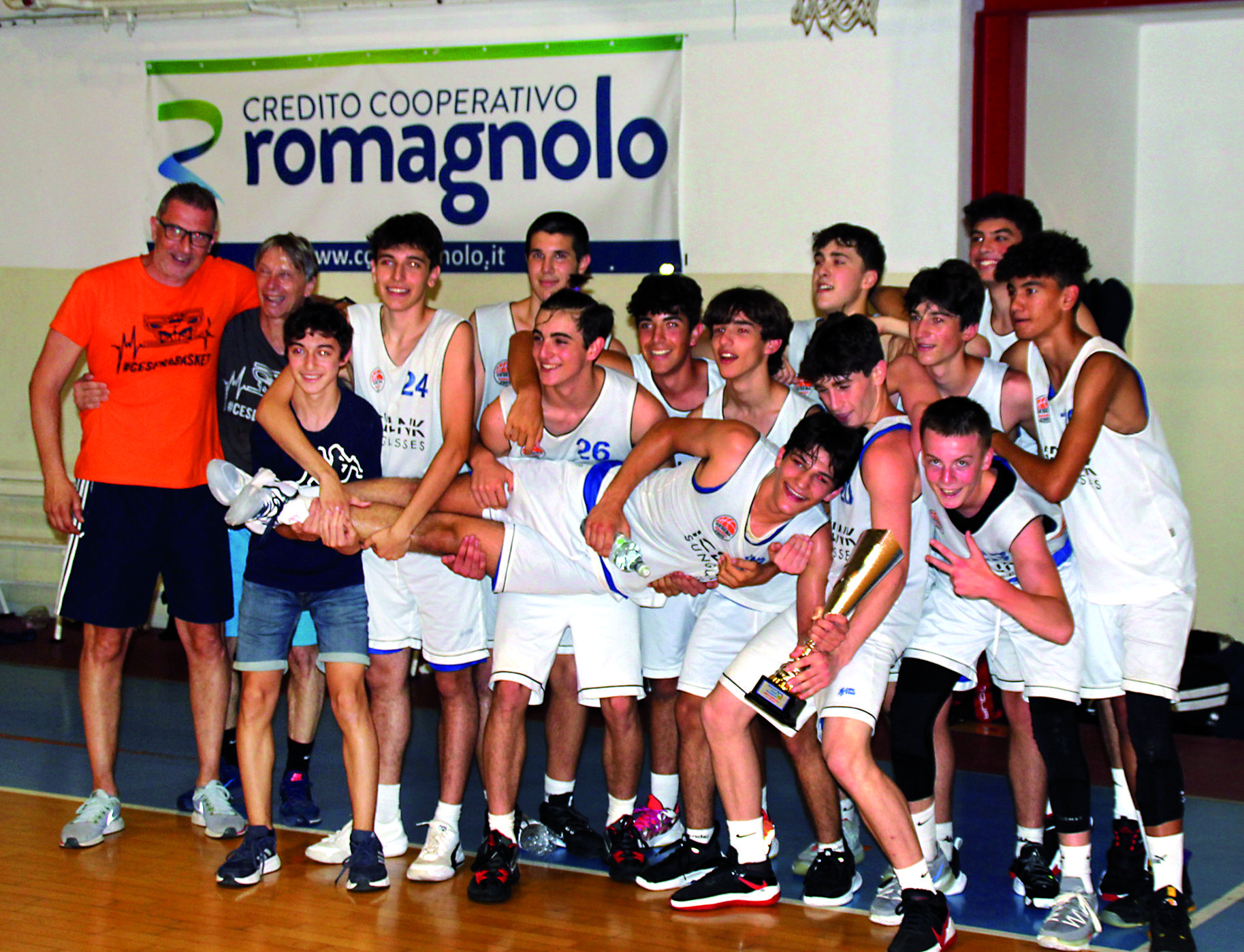 Al termine di una finale molto equilibrata e vissuta con entusiasmo dalle due tifoserie i ragazzi della Under 17 Silver della Cesena basket si sono aggiudicati il titolo regionale vincendo contro l’Acis Forlì la gara di andata in trasferta (56 a 61 martedì 7 giugno) e completare l’opera giovedì 9 al Palaippo con un più rotondo 65 a 52.
