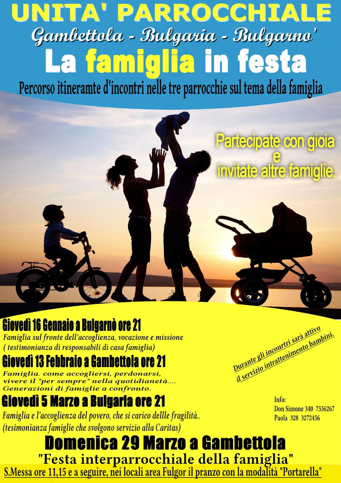 In occasione della festa della famiglia, l’unità parrocchiale Gambettola, Bulgaria, Bulgarnò organizza un poercorso itinerante di incontri nelle tre parrocchie sul tema della famiglia.