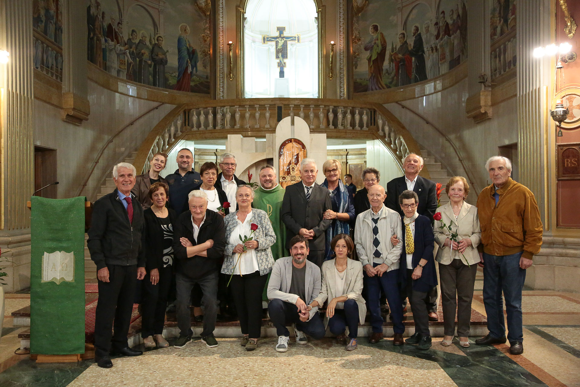 La foto dei festeggiati con il parroco fra Marco Pellegrini è di Matteo Rossi (Viterbo Fotocine, Longiano).