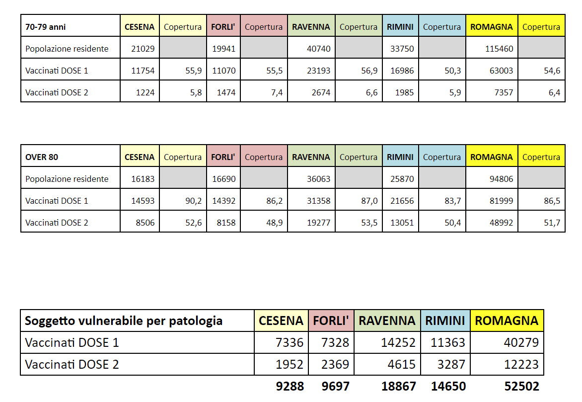 Coronavirus, prosegue la campagna vaccinale e Ausl Romagna fornisce i dati distretto per distretto. Sono 185mila circa le persone in Romagna, tra persone vulnerabili e anziani oltre i 70 anni, ad aver ricevuto almeno una dose.