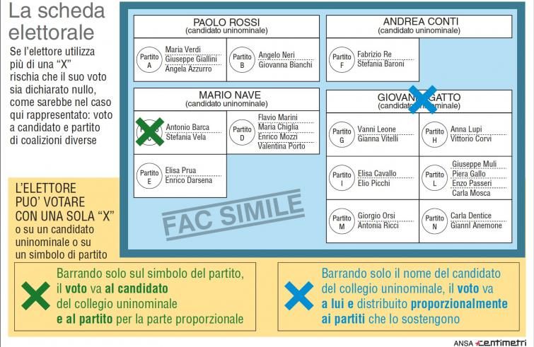 Non c’è voto di preferenza:i candidati delle piccole liste accanto ai simboli dei partiti vengono eletti nell’ordine in cui sono scritti. Non è possibile votare un candidato uninominale e allo stesso tempo segnare il simbolo di un partito che ne appoggia un altro.