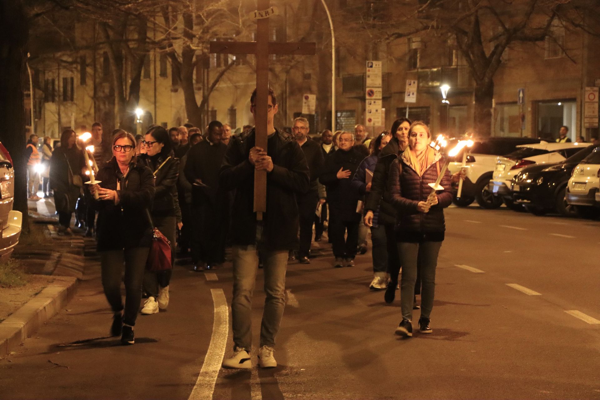 Ieri sera a Cesena si è tenuta la tradizionale via Crucis per le vie della città, con partenza dalla chiesa di San Domenico e conclusione in Cattedrale. Al ricordo della via dolorosa compiuta da gesù sul Calvario erano presenti almeno 500 persone che poi si sono fermate in Cattedrale per l’adorazione della Croce.