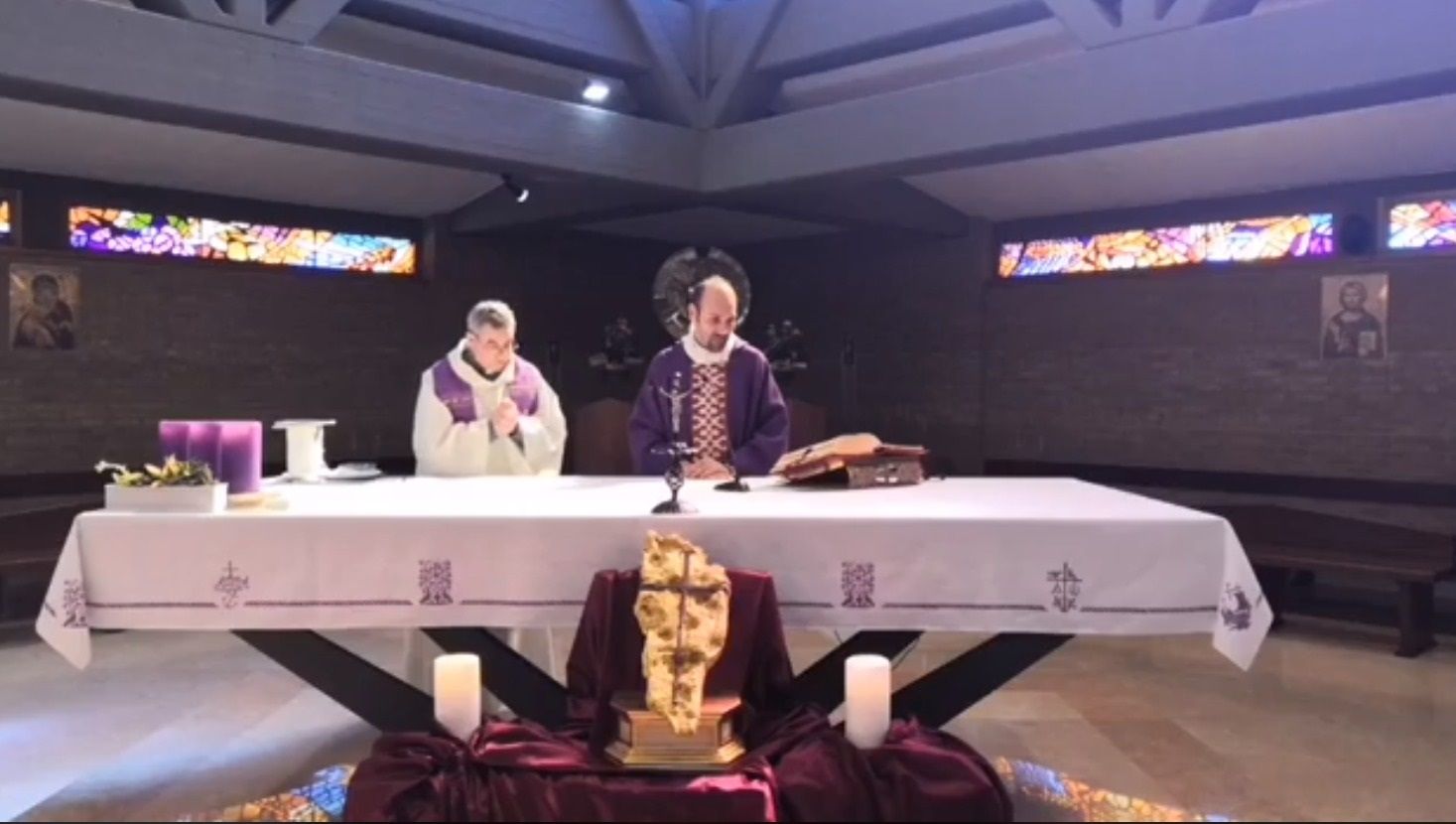 Don Filippo, in avvio di celebrazione ha invitato i fedeli a inviare intenzioni che poi verranno lette durante la preghiera dei fedeli.