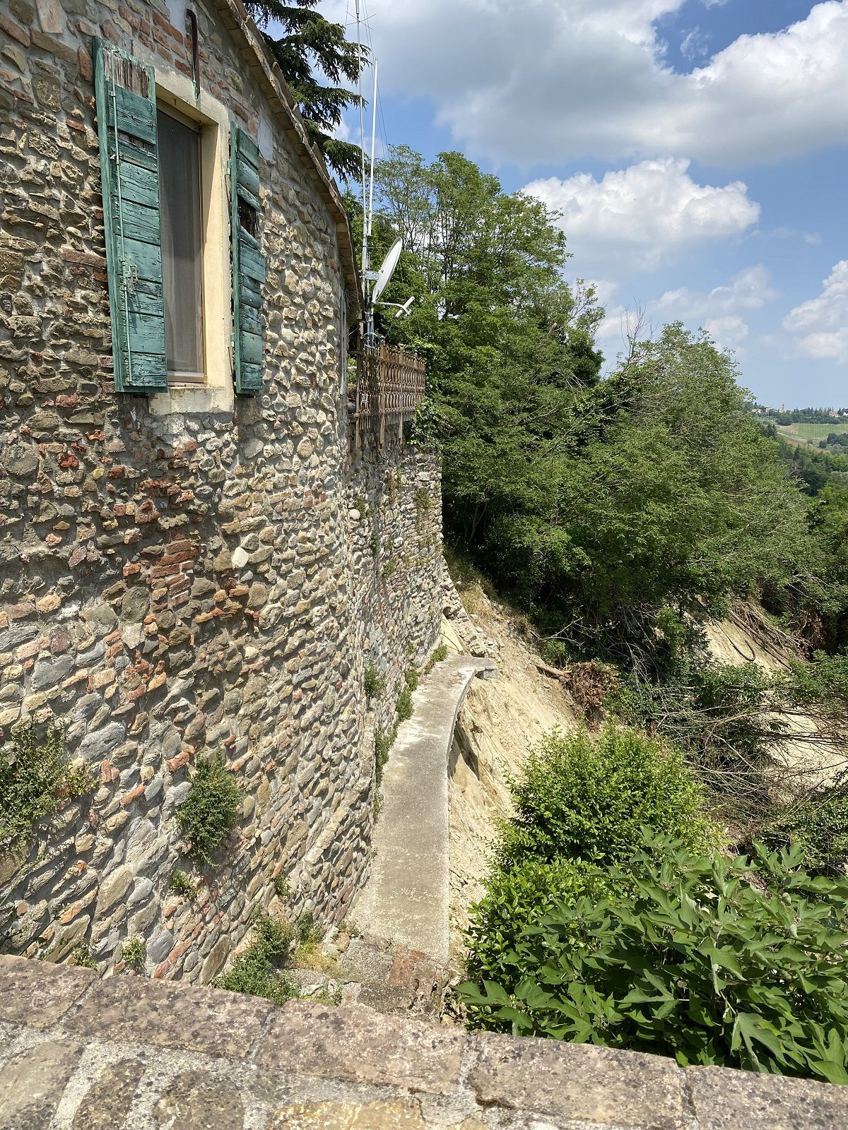del 1400, ha sotto di sé la frana più grande che minaccia l’intero abitato di Sorrivoli. Il baratro è spaventoso e il terreno ha ceduto nonostante i grandi interventi di consolidamento che qui erano stati eseguiti nel tempo (foto).