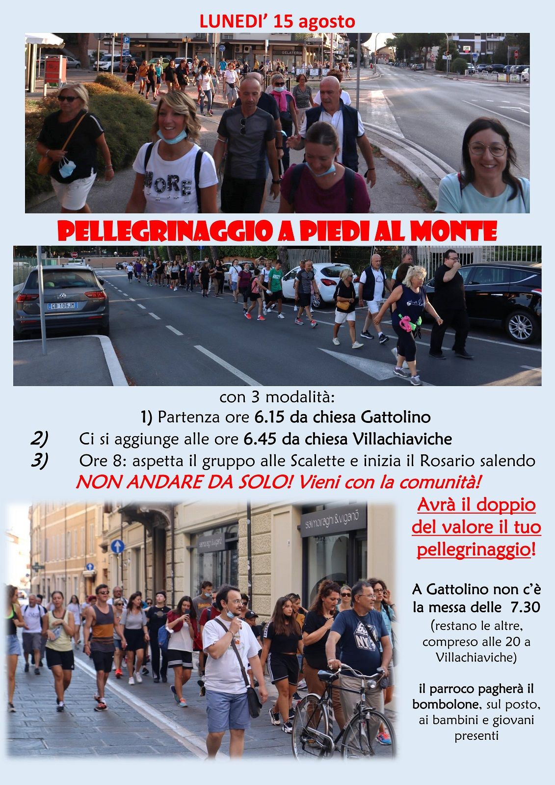 Il parroco don Daniele Bosi propone per domani, giorno di Ferragosto, come ogni anno, di andare a piedi insieme fino alla basilica di santa Maria del Monte che si festeggia il 15 agosto. La partenza è prevista alle 6,15 da Gattolino e alle 6,45 da Villachiaviche. Il ritrovo sarà alla base della via delle scalette da cui si partirà recitando il Rosario.
