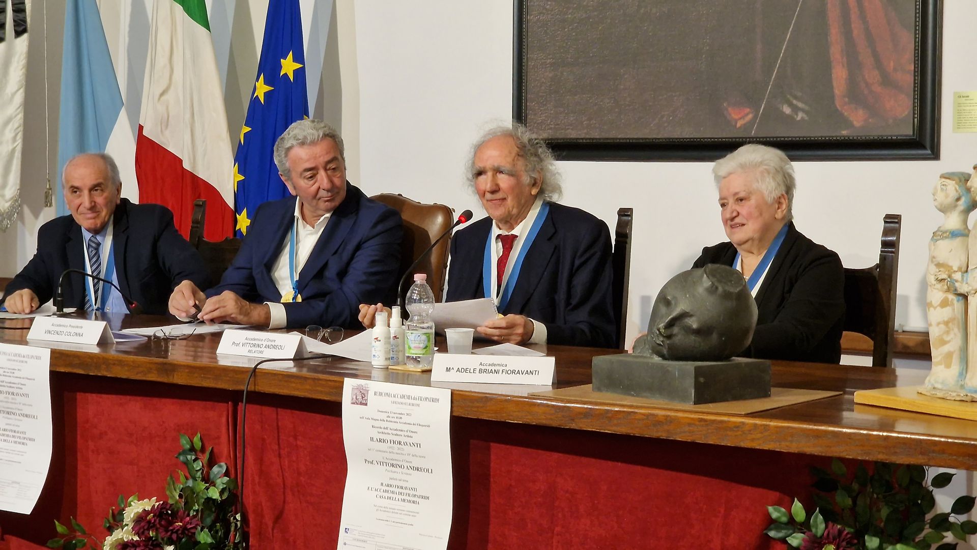 Al termine della mattinata Adele Briani, moglie di Fioravanti, ha donato l’opera “La Memoria” all’Accademia dei Filopatridi e “Coppia antica”, uno dei pezzi più amati dallo stesso Fioravanti, al professor Andreoli.