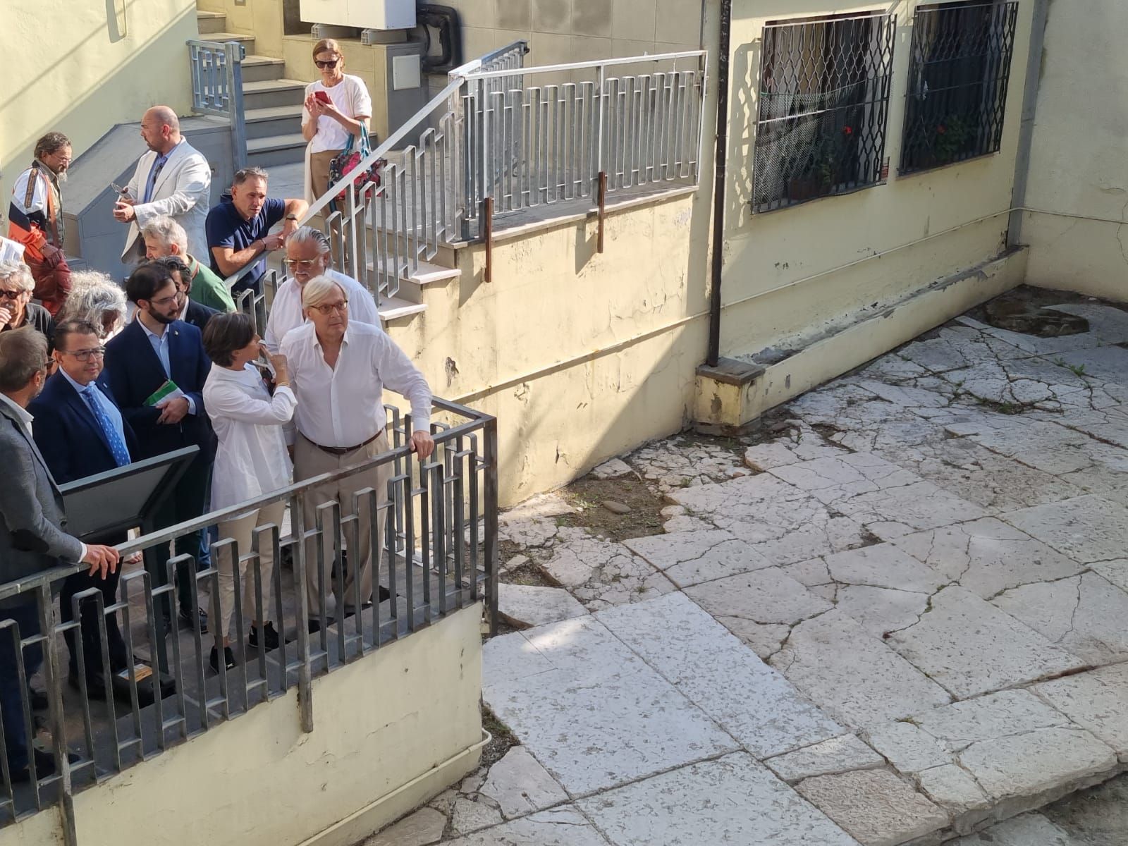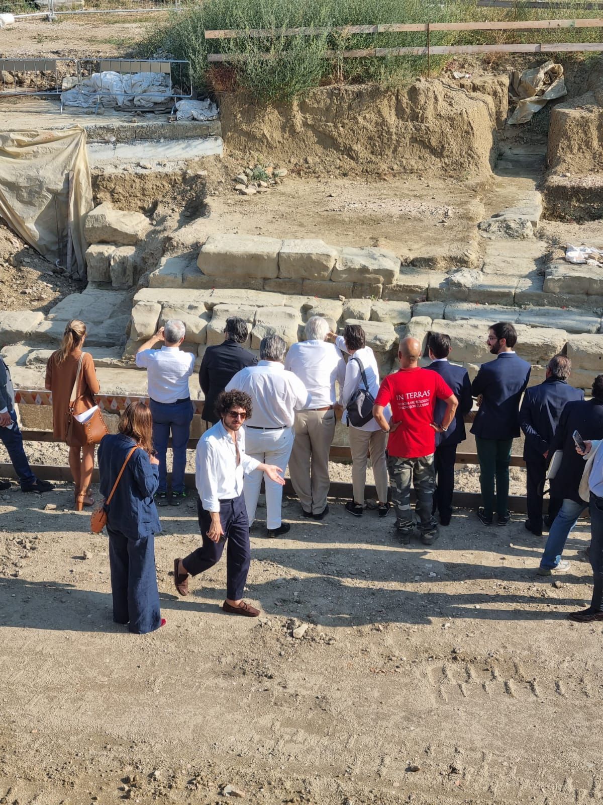 Sgarbi è arrivato poco dopo le 16 per un sopralluogo all’area archeologica dove poche settimane fa sono stati rinvenuti i resti di un tempio romano.