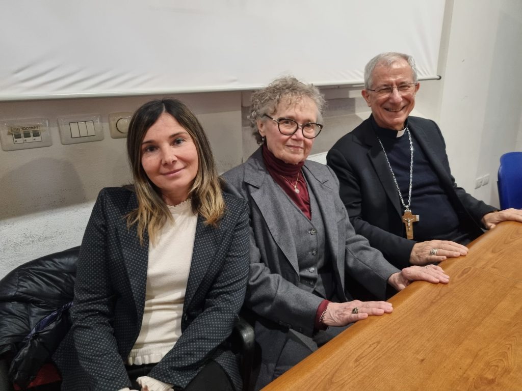 Da sinistra: Carmelina Labruzzo, Lisa Stoppa, Carla Tabarri Benelli, monsignor Antonio Giuseppe Caiazzo (foto: Sandra e Urbano fotografi, Cesena)