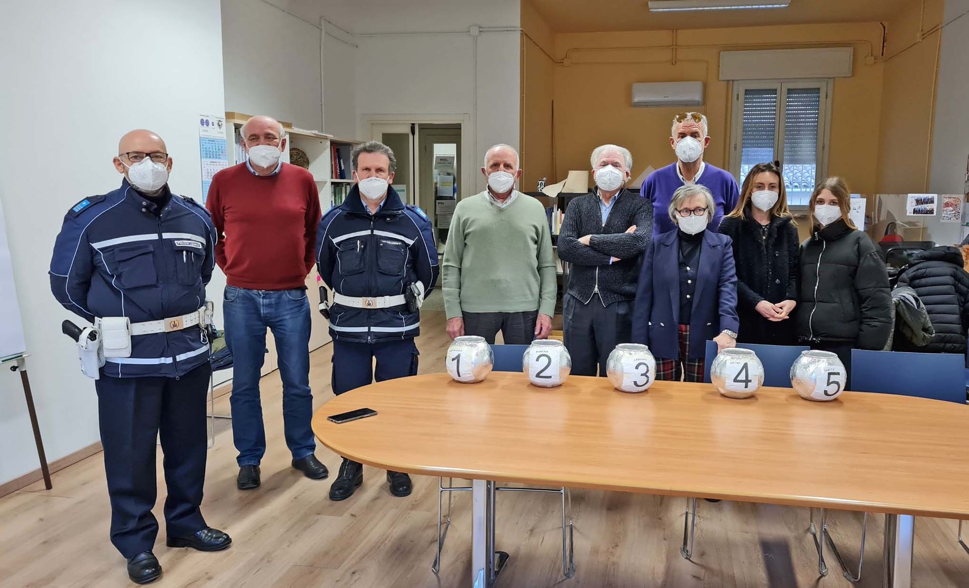 L’estrazione dei 150 biglietti vincenti si è svolta alla presenza dei rappresentanti degli enti organizzatori (Alberto Bravi per l’associazione Amici di don Dario, Fabio Fabbri e Carla Benelli per VolontaRomagna, Corinna Crippa per il Consorzio di solidarietà sociale) e di quella della Polizia Municipale (a garanzia della trasparenza dell’operazione).